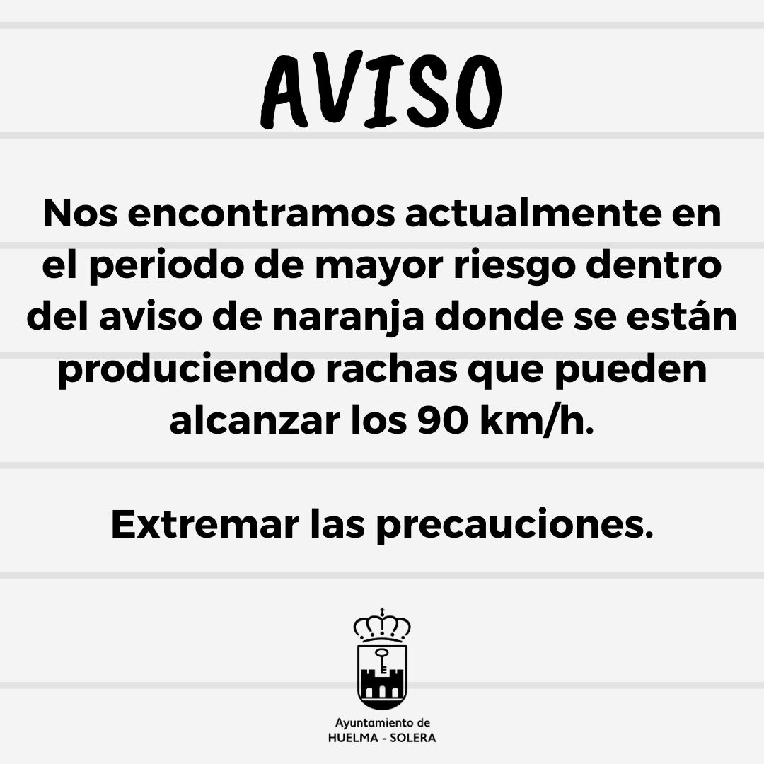 Hoy, miércoles 4 de febrero, desde las 03:00 h y hasta las 08:59 h, nuestra zona permanece bajo AVISO NARANJA POR VIENTO, con rachas que pueden alcanzar los 90 km/h procedentes del suroeste, según EUMETNET – MeteoAlarm. Nos encontramos actualmente en el periodo de mayor riesgo, por lo que es fundamental extremar la precaución 🚨